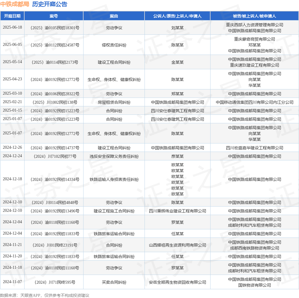 本站消息新富策略,根据天眼查APP显示新富策略,近日公布了一则中国铁路成都局集团有限公司作为被告/被上诉人的开庭公告,详细内容如下: